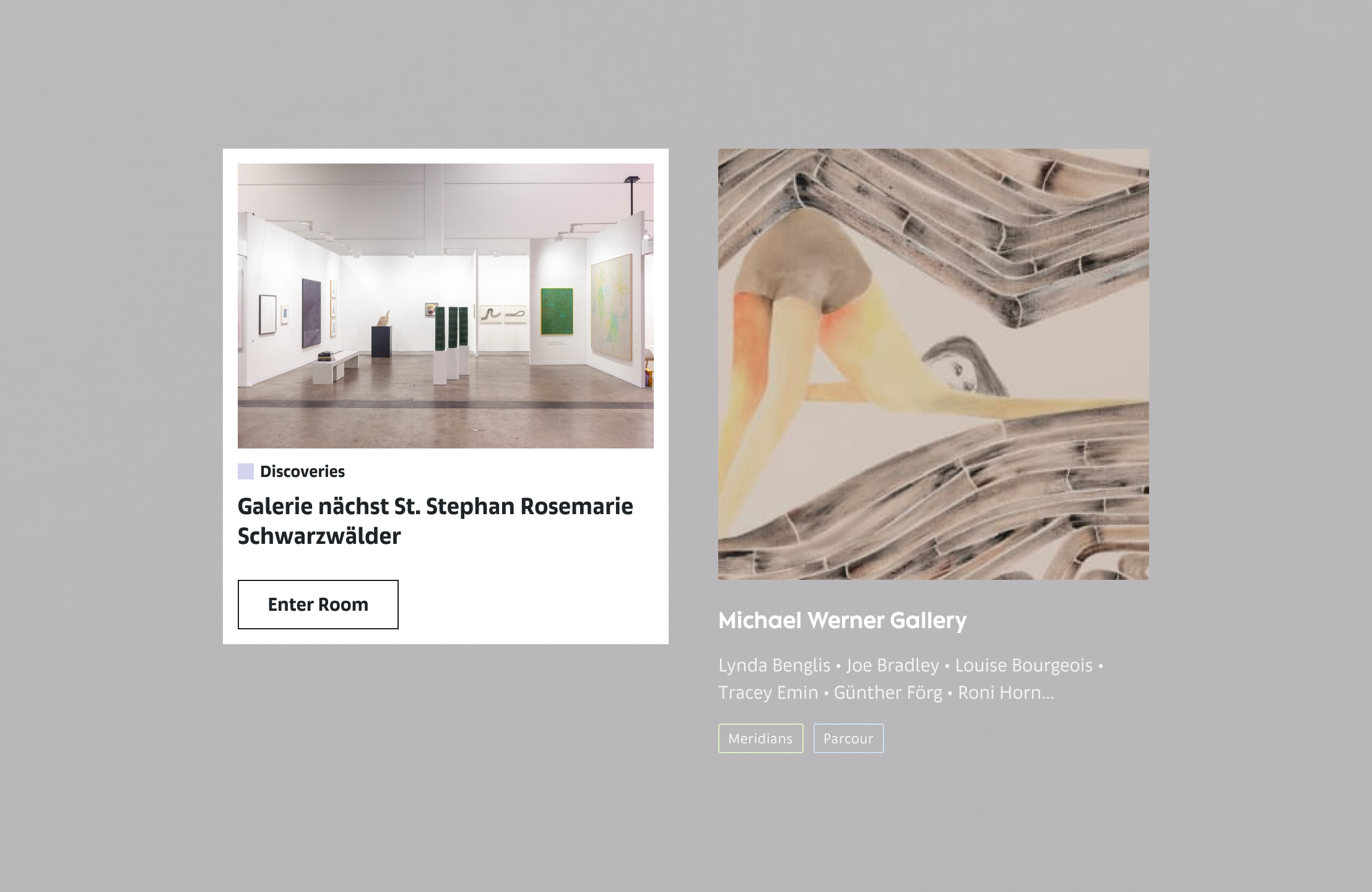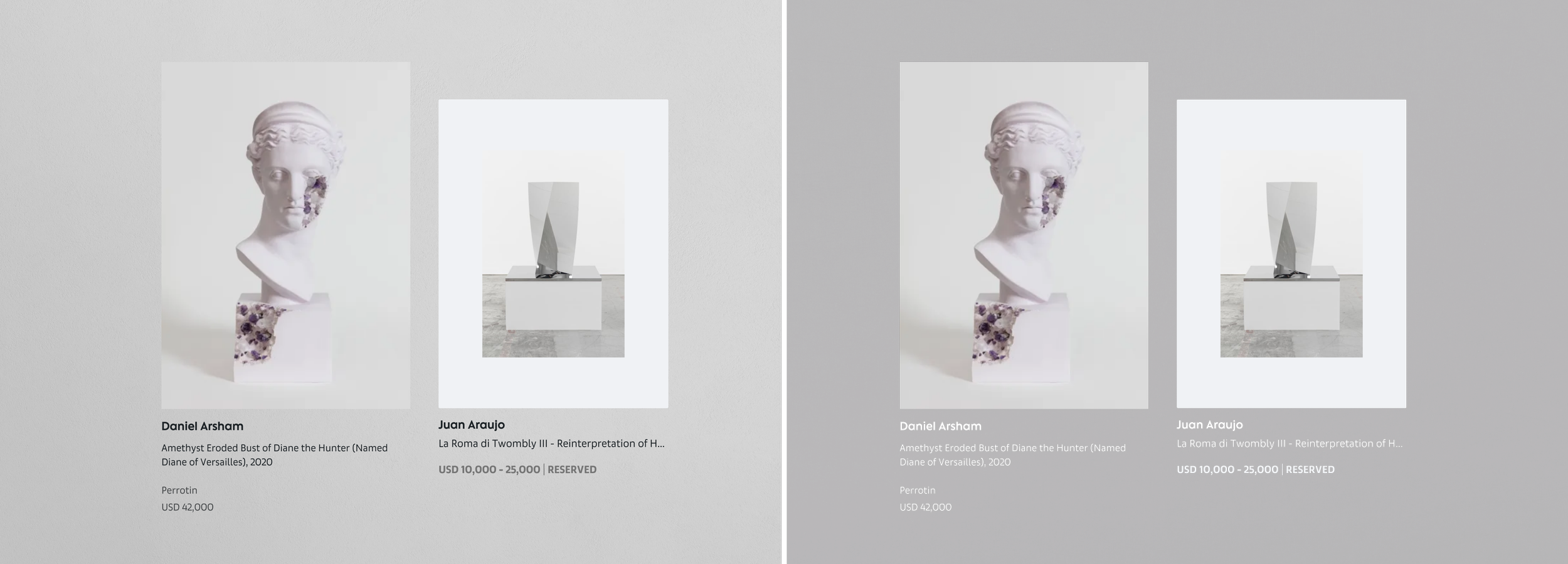 In the example above, you can see that we introduced two themes for cards, but in the example of the Artwork cards. They were designed to be displayed both in the field and on the carousel, where the background is dark.